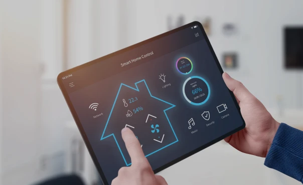 يربط نظام المنزل الذكي أجهزة منزلك - مثل الإضاءة والتكييف والأمن - بحيث يمكنك التحكم بها بسهولة من هاتفك أو مساعدك الصوتي.